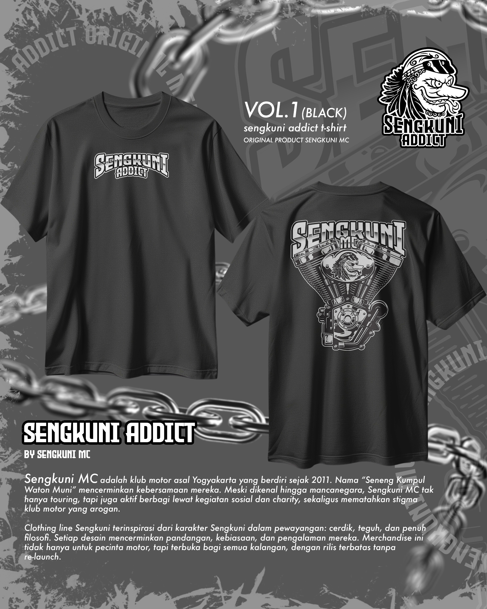 Merchandise resmi Sengkuni MC. Pesan langsung via WhatsApp.